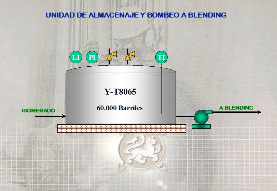 Asociado al mismo se encuentra una estación de bombeo de 350 m3/hr de capacidad, permitiendo que el producido almacenado sea enviado a la Unidad de Blending de la Refinería.